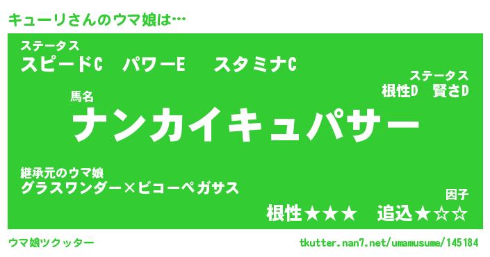 | ヘコむあだ名 | 『キュにゅー』『なまこ酢』 |