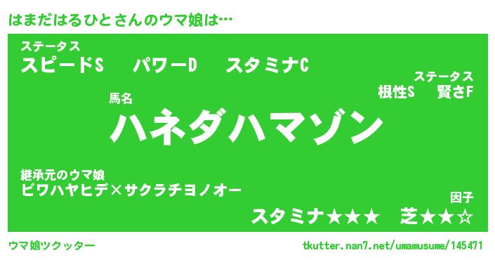 | 自動車の名前っぽいあだ名 | 『ハマティマ』『ハクア』『ハント』 |