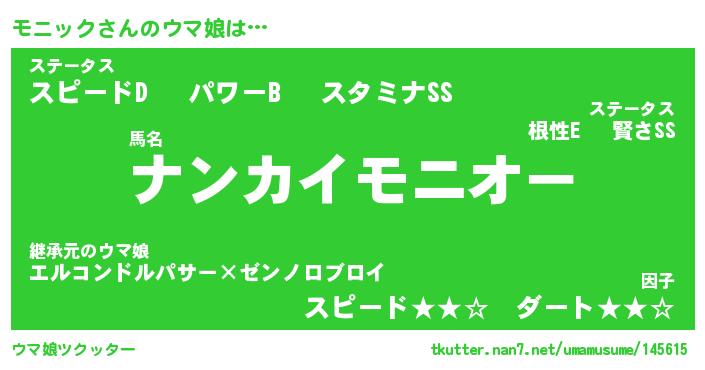 | ファンタジー風あだ名 | 『モニフェル』『エターナルモニックー』 |