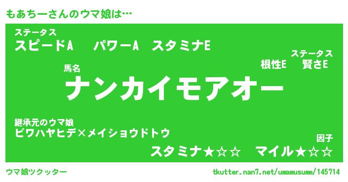 | ポケモン風あだ名 | 『モアチュウ』『モアチダネ』 |