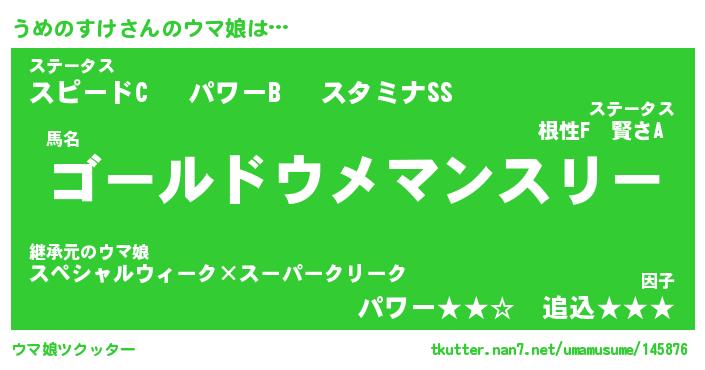 | ファンタジー風あだ名 | 『ウメフェル』『エターナルウメノスケー』 |