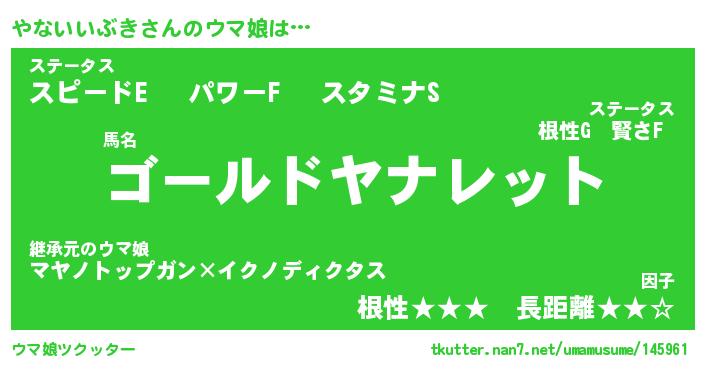 | 伝説のあだ名 | 『封印されしスナイパーやないいぶき』 |