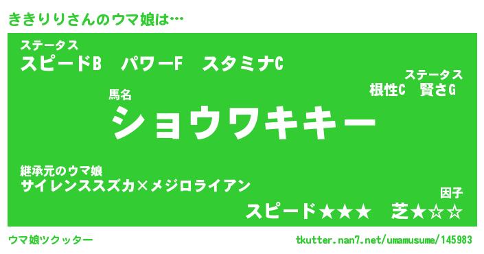 | 意味不明あだ名 | 『ペロリンききりり』『永久保存ききりり』 |