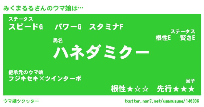 | ポケモン風あだ名 | 『ミクチュウ』『ミクマダネ』 |