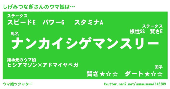 | 男性向けラノベタイトル風あだ名 | 『しげみつなぎの憂鬱』 |