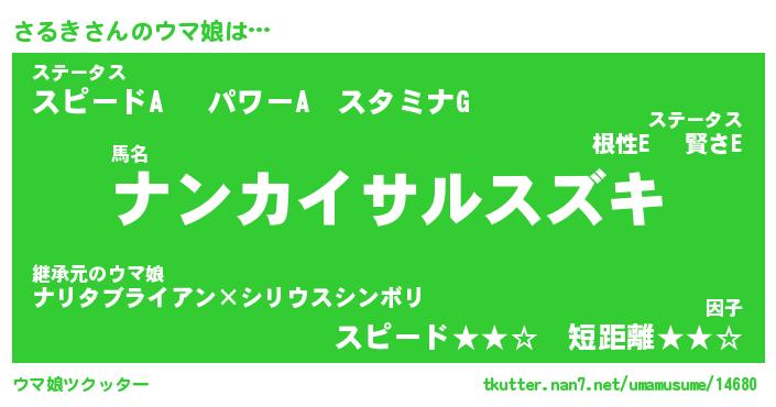 | 意味不明あだ名 | 『ペロリンさるき』『さるきフォーエバー』 |