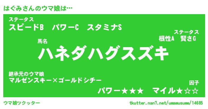 | 自動車の名前っぽいあだ名 | 『ハグティマ』『ハスラー』『ハンR』 |