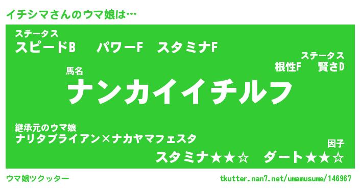 | ヒーロー風カッコイイあだ名 | 『スーパーイチシマ』『魔戒騎士イチ』 |