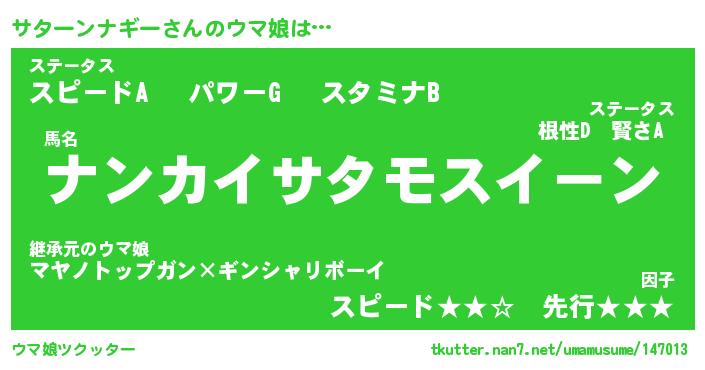 | 伝説のあだ名 | 『不死鳥の傭兵サターンナギー』 |