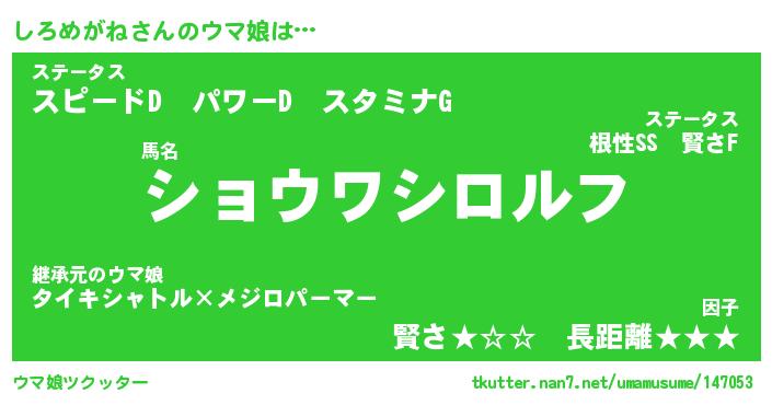 | ファンタジー風あだ名 | 『シロフェル』『エターナルシロメガネー』 |