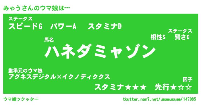 | ファンタジー風あだ名 | 『ミャフェル』『エターナルミャウー』 |