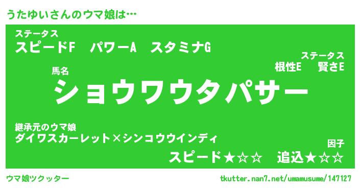 | ポケモン風あだ名 | 『ウタチュウ』『ウタユダネ』 |