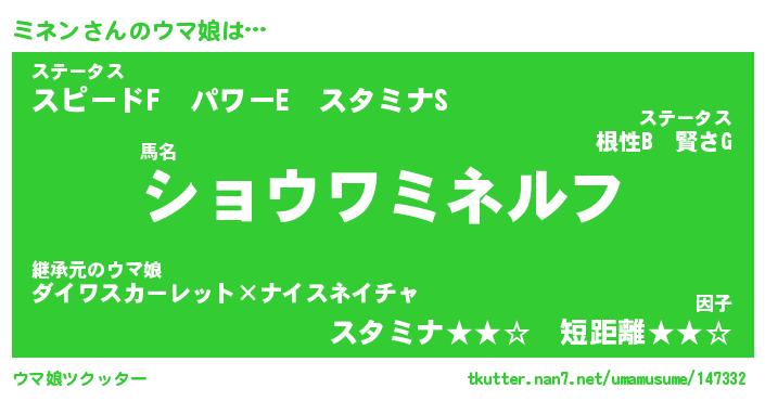 | 意味不明あだ名 | 『ペロリンミネン』『ミネンフォーエバー』 |