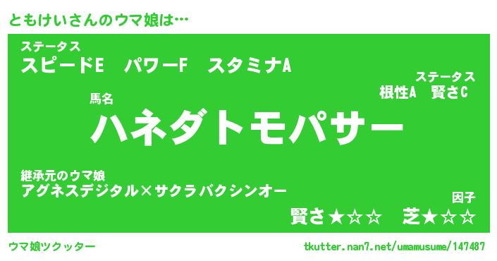 | 意味不明あだ名 | 『ペロリンともけい』『永久保存ともけい』 |