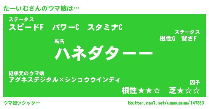 | ファンタジー風あだ名 | 『ターフェル』『エターナルターイムー』 |