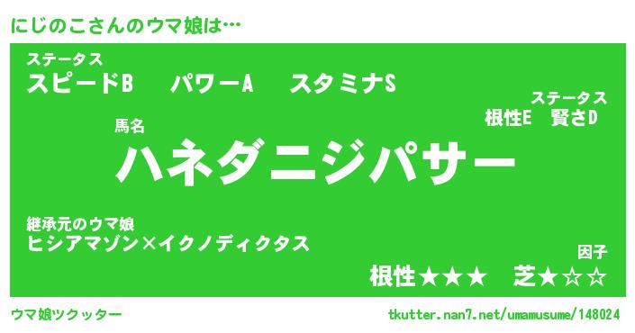 | 欧米人風あだ名 | 『マイケルにじのこ』『ウサインにじのこ』 |