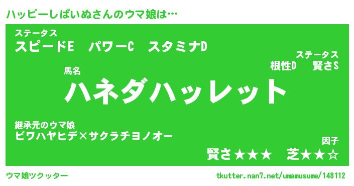 | 伝説のあだ名 | 『封印されし傭兵ハッピーしばいぬ』 |
