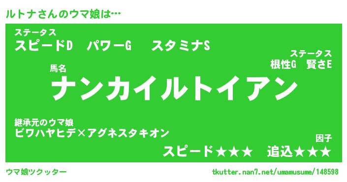 | ヘコむあだ名 | 『ルトもー』『なまこ酢』『ルト太郎』 |
