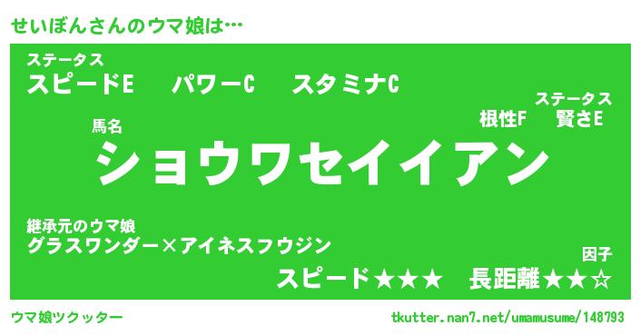 | 意味不明あだ名 | 『ペロリンせいぼん』『永久保存せいぼん』 |