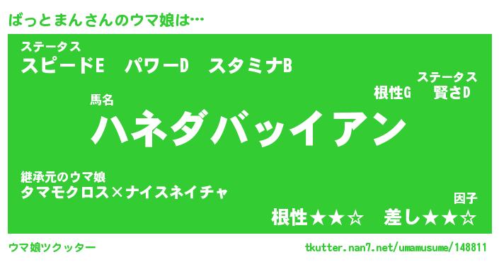 | ファンタジー風あだ名 | 『バッフェル』『エターナルバットマンー』 |