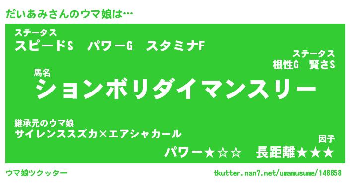 | 欧米人風あだ名 | 『マイケルだいあみ』『ウサインだいあみ』 |