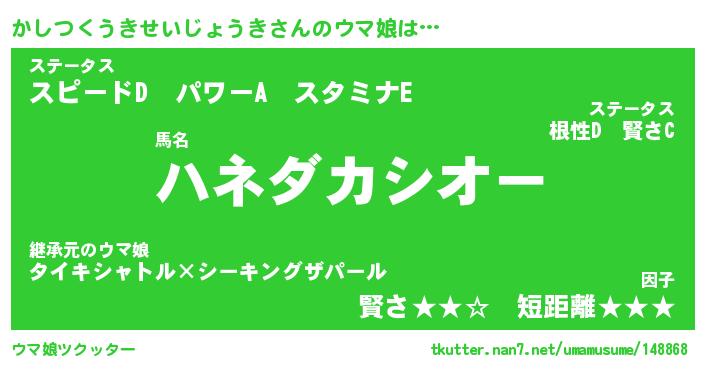 | 自動車の名前っぽいあだ名 | 『カシティマ』『カクア』『ヴィッカ』 |