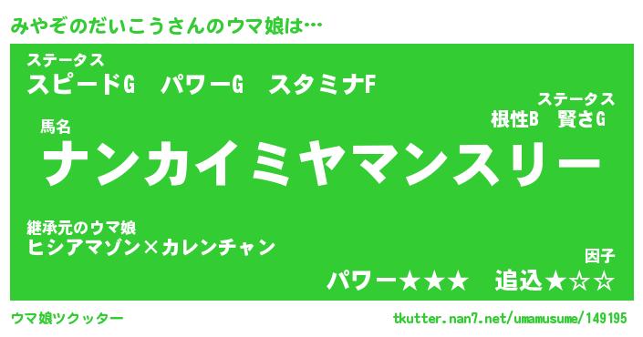 | 肩書あだ名 | 『みやぞのだいこう御曹司』 |