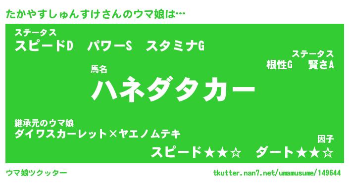 | ポケモン風あだ名 | 『タカチュウ』『タカヤダネ』 |