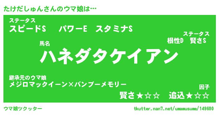 | ヒーロー風カッコイイあだ名 | 『スーパータケダシュン』『黄金騎士タケ』 |