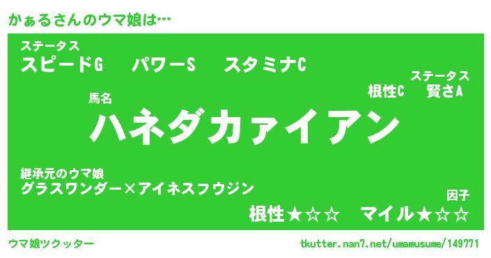 | 自動車の名前っぽいあだ名 | 『カァティマ』『カスラー』 |