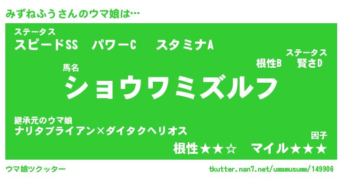 | ファンタジー風あだ名 | 『ミズフェル』『エターナルミズネフウー』 |