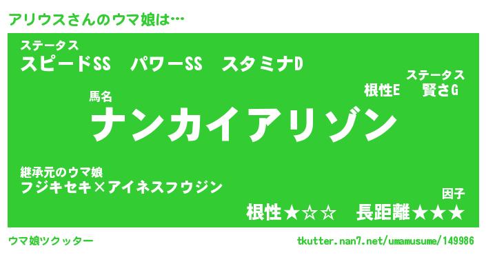 | 意味不明あだ名 | 『ペロリンアリウス』『永久保存アリウス』 |