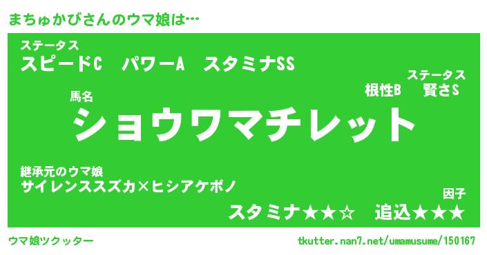 | 伝説のあだ名 | 『伝説のスナイパーまちゅかび』 |