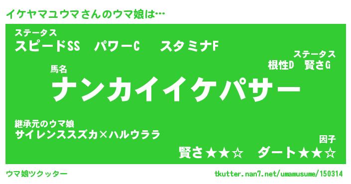 | 男性向けラノベタイトル風あだ名 | 『イケヤマユウマの憂鬱』 |