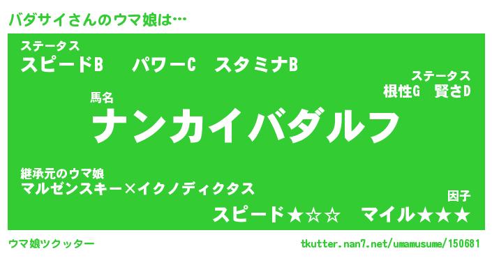 | ファンタジー風あだ名 | 『バダフェル』『エターナルバダサイー』 |
