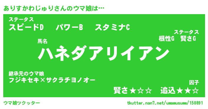 | 伝説のあだ名 | 『封印されし傭兵ありすかわじゅり』 |