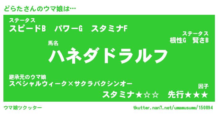 | ポケモン風あだ名 | 『ドラチュウ』『ドラタダネ』 |