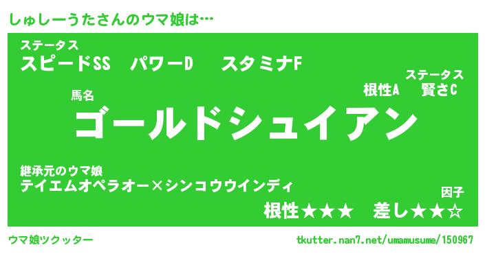 | ヒーロー風カッコイイあだ名 | 『スーパーシュシーウタ』『銀牙騎士シュ』 |