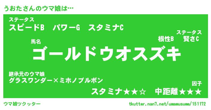 | 自動車の名前っぽいあだ名 | 『ウオティマ』『ウクア』『デミウ』 |