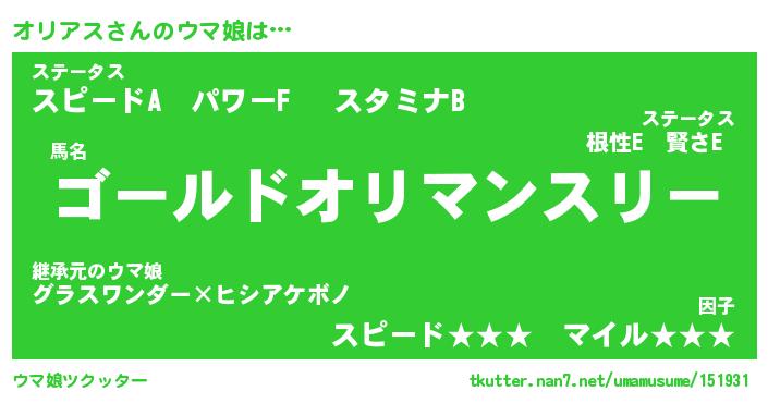 | 意味不明あだ名 | 『ペロリンオリアス』『永久保存オリアス』 |