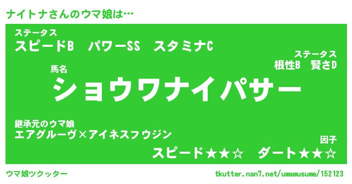 | 意味不明あだ名 | 『ペロリンナイトナ』『永久保存ナイトナ』 |