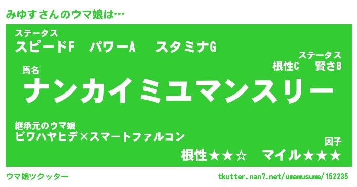 | ヘコむあだ名 | 『みゆにゅー』『つくし』『みゆ太郎』 |