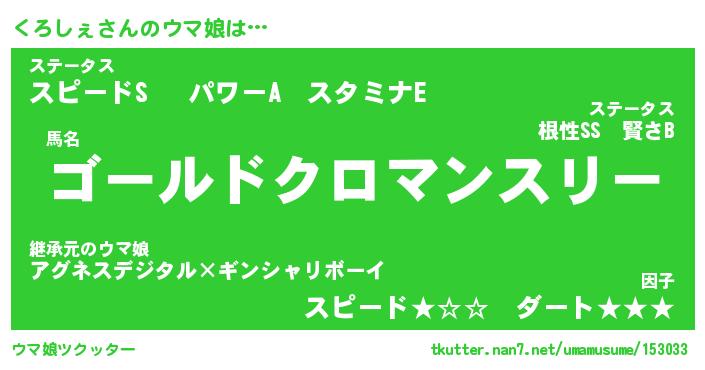 | 意味不明あだ名 | 『ペロリンくろしぇ』『永久保存くろしぇ』 |