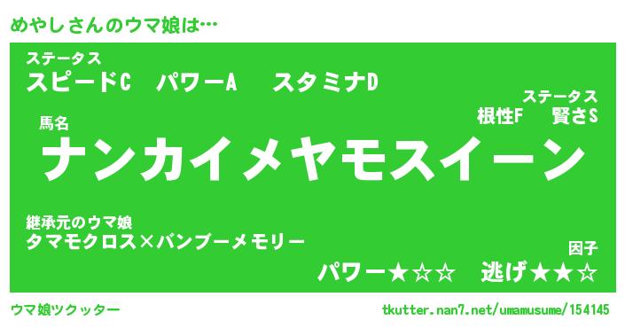 | ポケモン風あだ名 | 『メヤチュウ』『メヤシダネ』 |