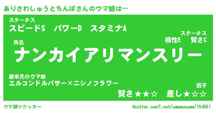 | ポケモン風あだ名 | 『アリチュウ』『アリサダネ』 |
