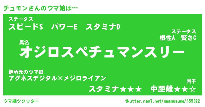 | 意味不明あだ名 | 『ペロリンチュモン』『永久保存チュモン』 |