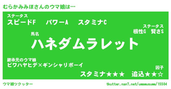 | 伝説のあだ名 | 『封印されしスナイパーむらかみみほ』 |