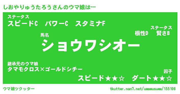 | 肩書あだ名 | 『しおやりゅうたろう御曹司』 |