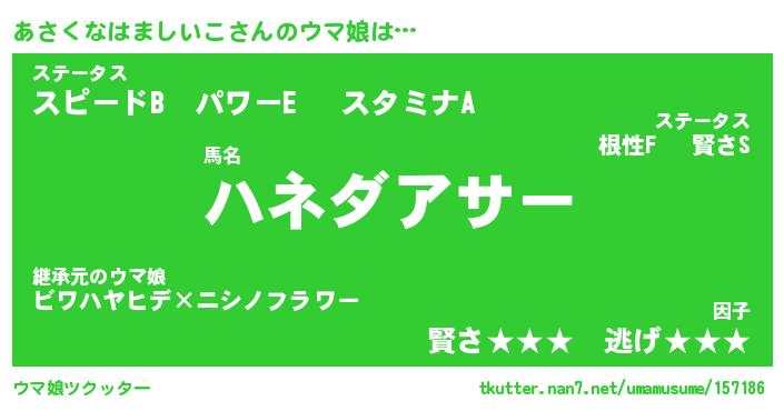 | ツイッター | あさくなはましいこさんのツイッターID『namakemono_kun』 |
