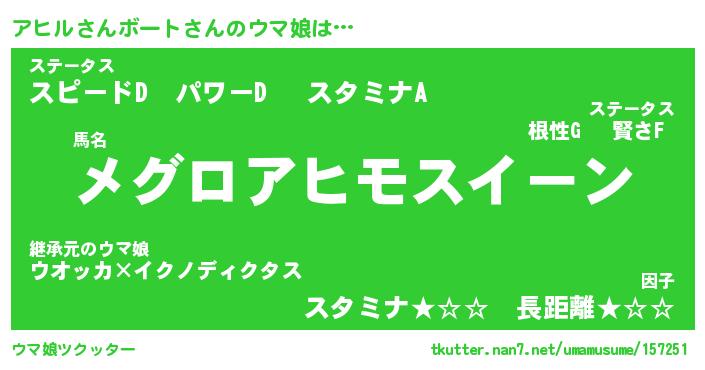 | ヘコむあだ名 | 『アヒにゅー』『つくし』『アヒっ子』 |